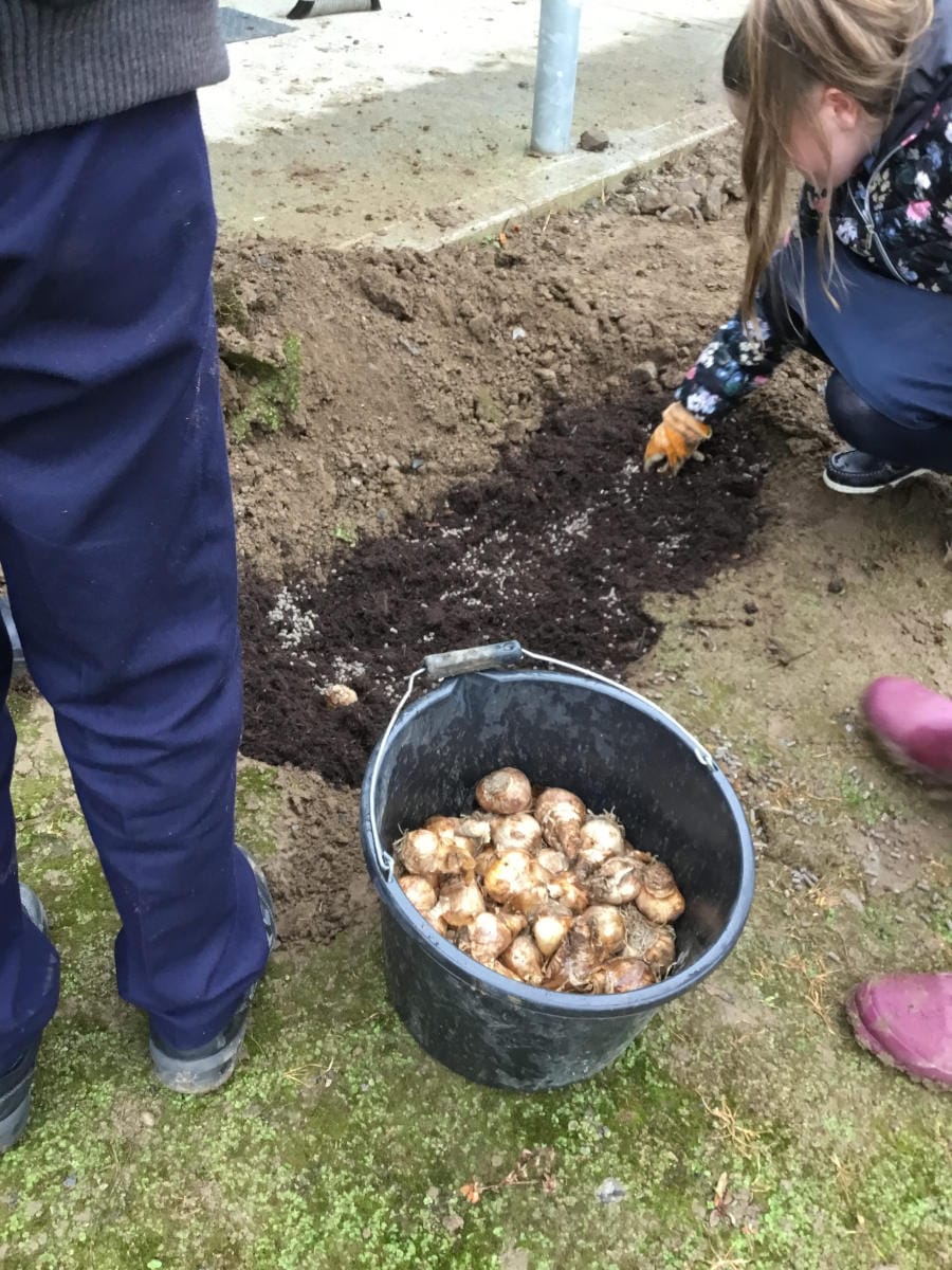 ‘Our Garden Project’ was an idea we decided to develop in September 2018. Our main aim was to support Biodiversity on our schools grounds. We wanted to have more varieties of plants, animals and insects in our garden in order to aim for our 5th Green Flag – the ‘Biodiversity’ flag. We also wanted to become more involved with nature and learn how to dig, plant and weed the garden. The 5th & 6th Class children gardened in teams of 4 under adult supervision. The younger children planted some seeds in their classrooms before putting them into the ground. We also hoped to incorporate some home-made bird feeders and nesting boxes. We hoped to create an edible garden and use the plants to make vegetables soup. This is going to be a long-term project undertaken by the whole school and by the time the Junior Classes reach Senior level, they will all have had a chance to be heavily involved with the garden. It is hoped that all of the children will transfer the skills and knowledge they have learned to their gardens at home. None of this would be possible without the help of Mrs. Lindsay Orton and Mrs. Linda Gilsenan who are both skilled gardeners. They have a vast range of knowledge about plants and their willingness to commit to this long-term project was a crucial part in our decision to push forward with ‘The Garden Project’.
